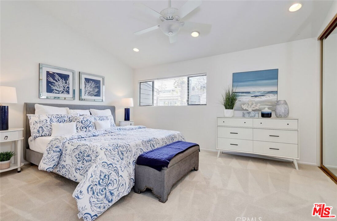 Perched in the sought-after Hollywood Riviera, this light-filled end unit captures ocean views stretching from the rolling hills of Palos Verdes all the way to Malibu and Point Dume on a clear day. Natural light floods the home thanks to the soaring ceilings and expansive west-facing windows. The main living room area is a warm and cozy space and just adjacent you can step outside to the private patio to savor your morning coffee or unwind with sunset cocktails.The open-concept layout features a kitchen with granite countertops and stainless steel appliances, flowing seamlessly into a formal dining area ideal for hosting. A dedicated office/den with built-in cabinetry creates a perfect flexible space that can be dedicated to remote work, studying or a cozy media space. Upstairs, the primary suite feels like a true retreat with vaulted ceilings, ocean vistas, and its own private patio. A spacious walk-in closet and ensuite add comfort and luxury. A second bedroom with vaulted ceilings and its own bathroom sits just across the hall, along with convenient upstairs laundry.Located close to one of two community pools and spa areas, this home is part of the beautifully maintained Village Palos Verdes complex, offering resort-style amenities and a vibrant village atmosphere. Enjoy sunny afternoons by the pool, dinner in the Village, and end your day watching the sunset from your own private sanctuary. The large two-car garage provides ample storage, making coastal living effortless. Don't miss your chance to live the Riviera lifestyle.
